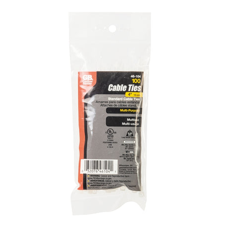 Gardner Bender 46-104 Cable Tie, 6/6 Nylon, Natural, 4 in L, 100/PK