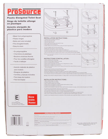 ProSource KJ-873A1-BN Toilet Seat, Elongated, Plastic, Bone, Plastic Hinge