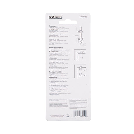 ProSource 23260-SC-PS Surface Bolt, 0.7 in Bolt Head, 4 in L Bolt, Satin Chrome