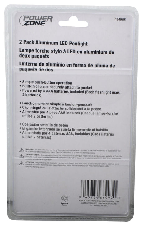 PowerZone 12142 Flashlight, AA Battery, LED Lamp, 25 Lumens, Pack of 24