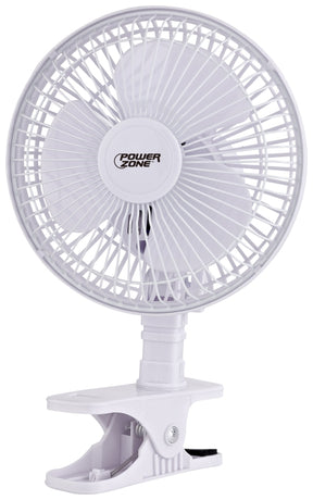 Personal clip-on/table fan, 6 in, 2 speed energy saving motor, 3 position slide switch (Lo, Off and Hi). Mounts easily on a desk or table. 90 deg full room oscillation. 120 deg vertical tilt. Powder-coated safety grill. Optional base. ETL and CETL Certified.