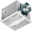 Low profile grill almost disappears into ceiling and a motor with a large, quiet, centrifugal blower wheel. Provides lowest possible HVI certified sound rating. Install using the four included adjustable hanging brackets. Motors are suitable for continuous operation, 6 in round duct connector with a spring-loaded metal damper. For use over a tub or shower when installed on a GFCI circuit. Side access panel allows wiring fan from inside or outside the housing. Complies with ASHRAE 62.2 the minimum national standard, has three main components source control, local exhaust and whole house ventilation. Housing size of 12-7/8 x 12-3/4 x 9-7/8 in.