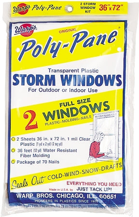 Warp's Poly-Pane Series 2P-24 Storm Window Kit, 36 in W, 1 mil Thick, 72 in L, Clear, Pack of 24