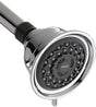3-1/2" round shower head. 3 modes: full body coverage, concentrated center spray/massage, full body/massage combination, Features spray control ring, easy clean nozzles, removable flow regulator.