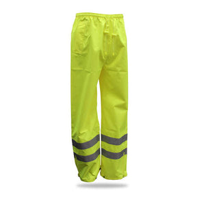 The Boss Hi-Vis Rain Trousers provide protection from bad weather while having flexibility to continue working. The color and reflective stripes provide high visibilty for safety.