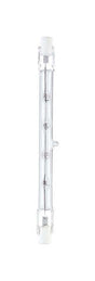 Double-ended halogen light bulbs produce a bright white light making them ideal for use in task or general purpose lighting. These bulbs should not be touched with bare hands. The oil from skin can create hot spots on the glass that reduce the life of the bulb.