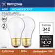 Westinghouse Appliance 40 W A15 A-Line Incandescent Bulb E26 (Medium) White 2 pk