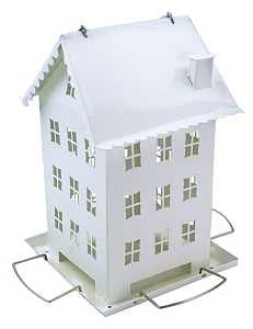 Introduce your backyard birds to the charm of farmhouse living with the Perky-Pet farmhouse feeder. This quaint white feeder is designed to resemble an old fashioned farmhouse, complete with a gabled, scalloped edge roof and an array of windows. In addition to adding authentic appeal, the numerous windows allow you to easily monitor seed levels.