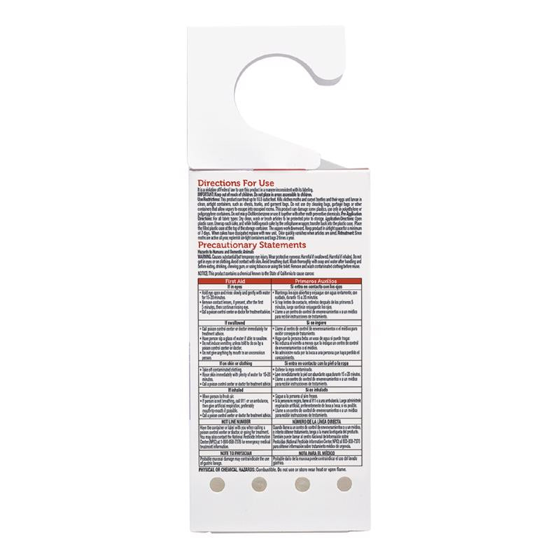 Kills clothes moths and carpet beetles their eggs and larvae