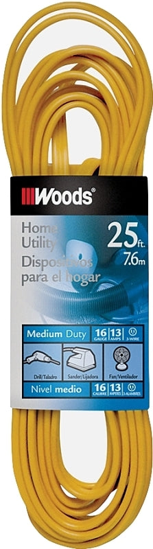 Woods 0831 Extension Cord, 16 AWG Cable, 25 ft L, 10 A, 125 V, Yellow