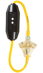 GFI protected 2 ft 12/3 SJTW power block cord with in-line GFCI, converts 1 outlet into 3 GFCI protected outlets. Light indicates when the power is on. 15 A/120 V/1800 W. Meets OSHA specifications. UL listed. Sleeved.