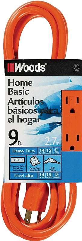 CCI 0872 Extension Cord, 14 AWG Cable, 9 ft L, 15 A, Orange