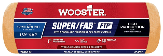 Wooster RR924-9 Roller Cover, 1/2 in Thick Nap, 9 in L, Fabric Cover, Lager