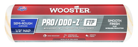 Wooster RR666-9 Roller Cover, White, 3/8 in Thick Nap, 9 in L, Fabric Cover