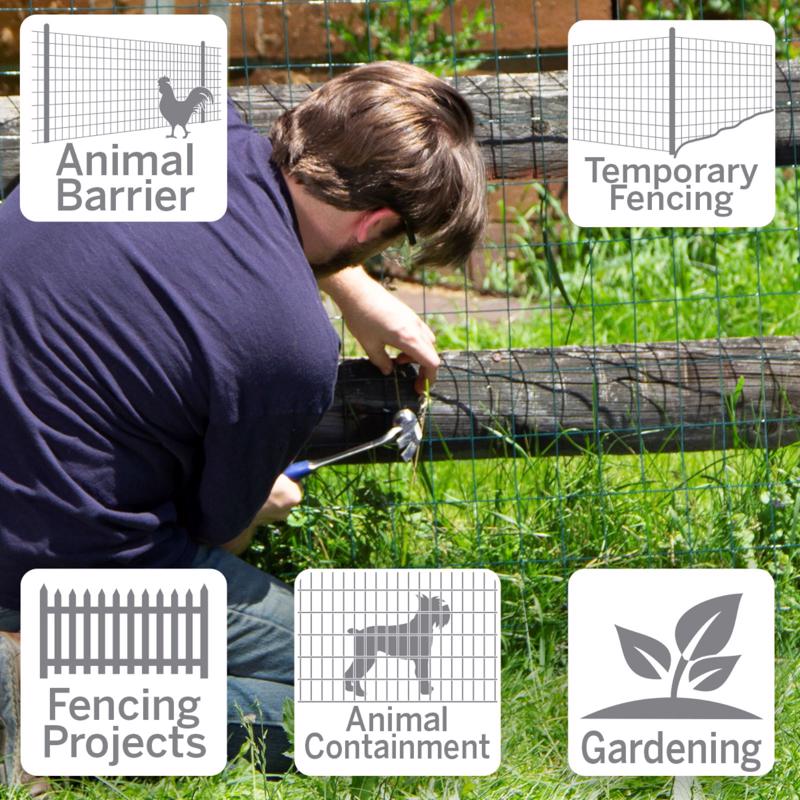 24 in. H x 50 ft. L welded wire fence is constructed of durable steel wire with 2 in. x 3 in. mesh openings. This welded wire can be used for a number of applications around the farm, home, or garden. Can be used with u-posts, t-posts, or wood posts depending on your fencing needs. Coated with Green vinyl for added protection. *