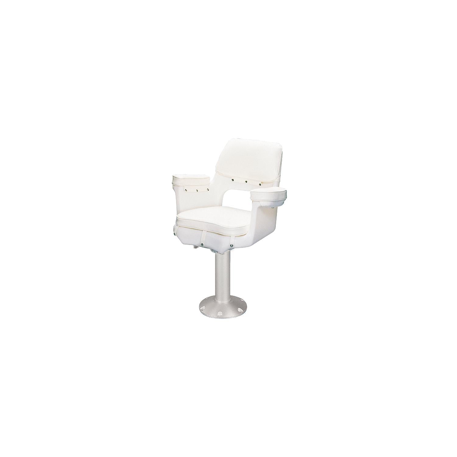 Package Includes seat, removable snap-on cushion set, polyethylene mounting plate, 15" anodized aluminum pedestal, bushing and manual slider w/Mounting Plate & Spider.