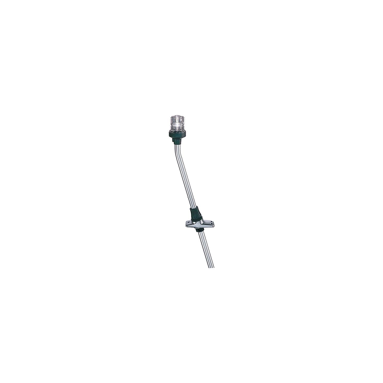 USCG certified for use on power driven vessels under 20 meters (65.6 ft.) in length. 2-mile visibility. Black plastic top, chrome plated zinc alloy base 3/4" diameter anodized tube with locking collar, and 16 degree rake. Screw size is #8. 12V bulb 0337011DP included. Telescoping base (3-3/4" x 1-5/8") included. Spare Base #1059T00DP.