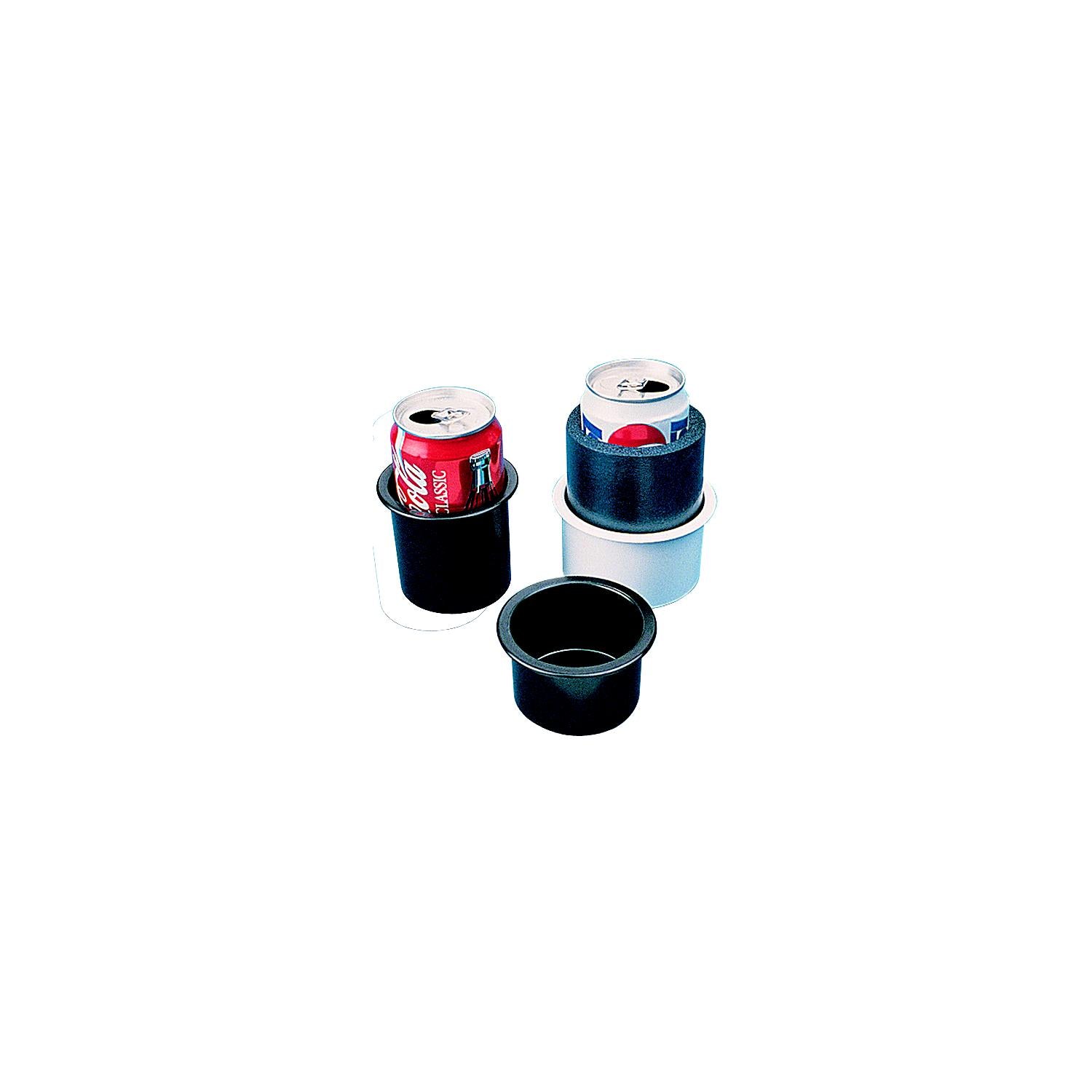 Flush Mount Drink Holders accommodate drink containers up to 2-7/8 in diameter and require a 3" diameter hole for installation. 2" depth. Impact resistant injection molded ABS construction.