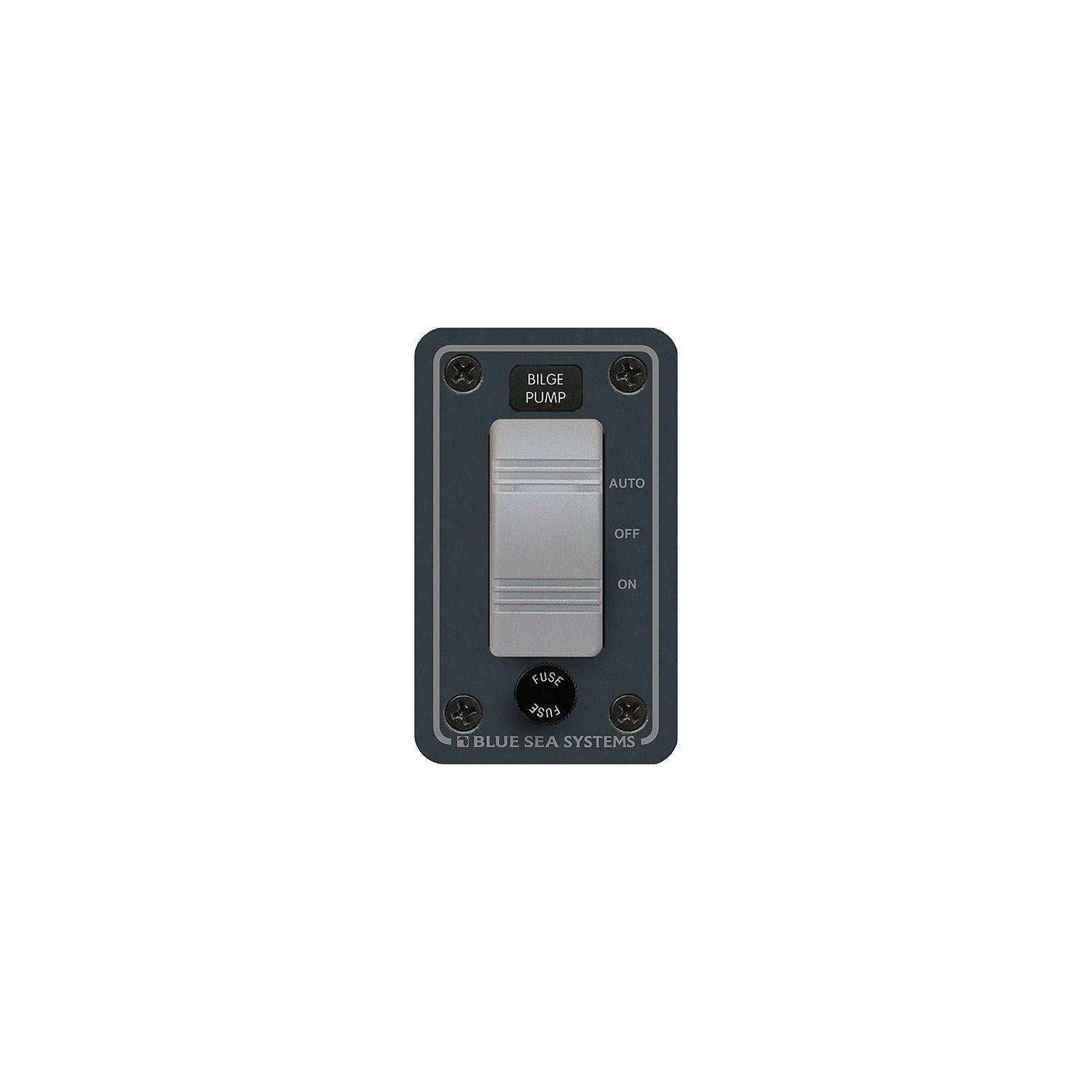 Water resistant bilge pump panel is designed for open-cockpit and flybridge applications and features a contura switch with ON indicating LED's and a watertight mounting gasket.
