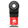 Diablo's Starlock carbide oscillating blades feature application specific designs that deliver extreme durability and great cutting life in metal cutting. High-performance carbide teeth deliver an unmatched up to 50X longer cutting life versus standard bi-metal blades. An optimized blade and tooth design, along with Black I.C.E. (Industrial Cooling Element) keeps the teeth cool and build up-free for fast, clean cuts. Tool-free quick change interface fits Fein and other Starlock tools, also compatible with Non-Starlock multi-tools.
