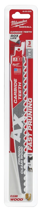 Milwaukee AX 48-00-5332 Pruning Blade, 9 in Blade, 3 TPI, Carbide Blade, For: Reciprocating Saws