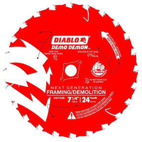 New Demo Demon Amped, the ultimate framing and demolition saw blade for up to 10X cutting performance in intense applications. This 7-1/4 in 24 tooth blade includes a new industry-first tooth grind sequence, Tracking Point Amped that is specifically designed to provide extreme durability and effortless cuts, even when cutting abrasive materials such as shingles, bolts or nail-embedded wood.
