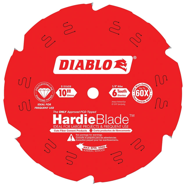 Diablo D1006DH Circular Saw Blade, 10 in Dia, 5/8 in Arbor, 6-Teeth, Polycrystalline Diamond Cutting Edge