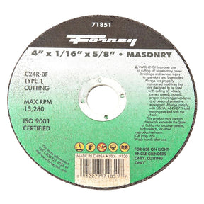 Forney 71851 Cutting Wheel, 4 in Dia, 1/16 in Thick, 5/8 in Arbor, 24 Grit, Coarse, Silicone Carbide Abrasive is backordered and will ship as soon as it is back in stock.
