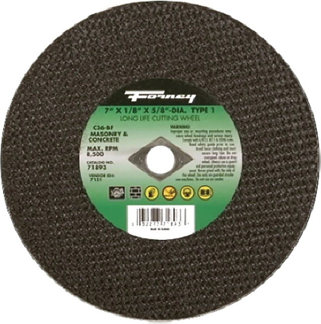 Forney 71893 Cut-Off Wheel, 7 in Dia, 1/8 in Thick, 5/8 in Arbor, 24 Grit, Coarse, Silicone Carbide Abrasive