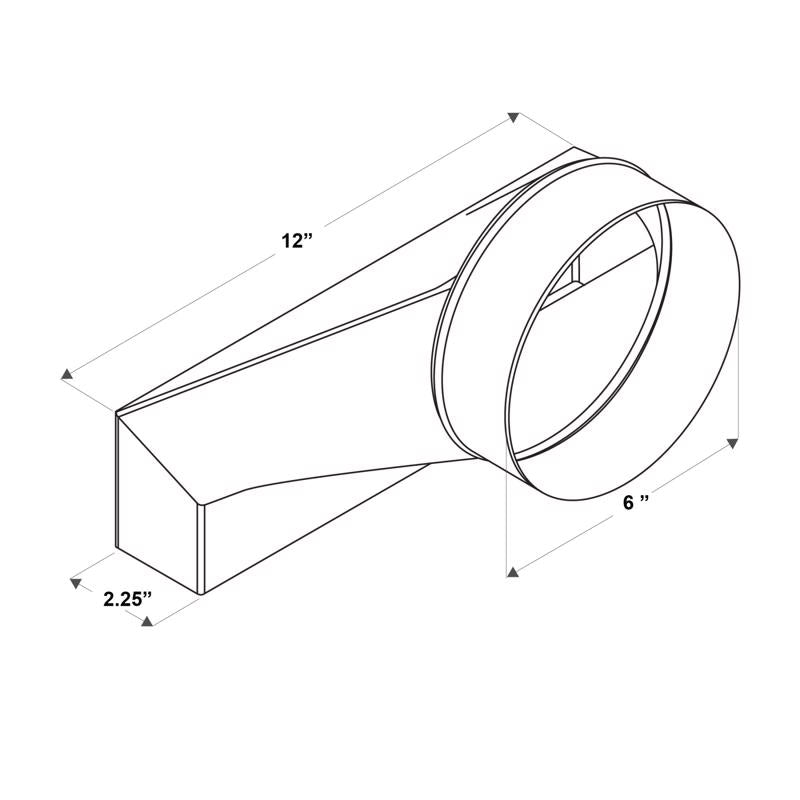 Creates a right-angle transition to a 2 1/4-in x 12-in register or grille