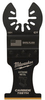 Our universal fit OPEN-LOK titanium enhanced carbide teeth extreme materials blades for oscillating multi-tools are designed for use in the most Extreme material cutting applications. For use in wood, screws, nails, cement board, plaster and other cutting applications, the titanium enhanced carbide teeth extreme materials blade is complete with a thinner blade and unique aggressive tooth design that offers faster cutting performance in wood when compared to the standard carbide blade. The extreme materials carbide teeth blade lasts up to 50X longer than standard bi-metal blades and can be used in a wide range of materials. These Milwaukee multi-tool blades are designed and made in the USA with global materials.