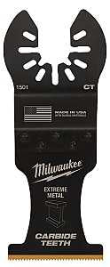 Our universal fit OPEN-LOK titanium enhanced carbide teeth extreme materials blades for oscillating multi-tools are designed for use in the most Extreme material cutting applications. For use in wood, screws, nails, cement board, plaster and other cutting applications, the titanium enhanced carbide teeth extreme materials blade is complete with a thinner blade and unique aggressive tooth design that offers faster cutting performance in wood when compared to the standard carbide blade. The extreme materials carbide teeth blade lasts up to 50X longer than standard bi-metal blades and can be used in a wide range of materials. These Milwaukee multi-tool blades are designed and made in the USA with global materials.