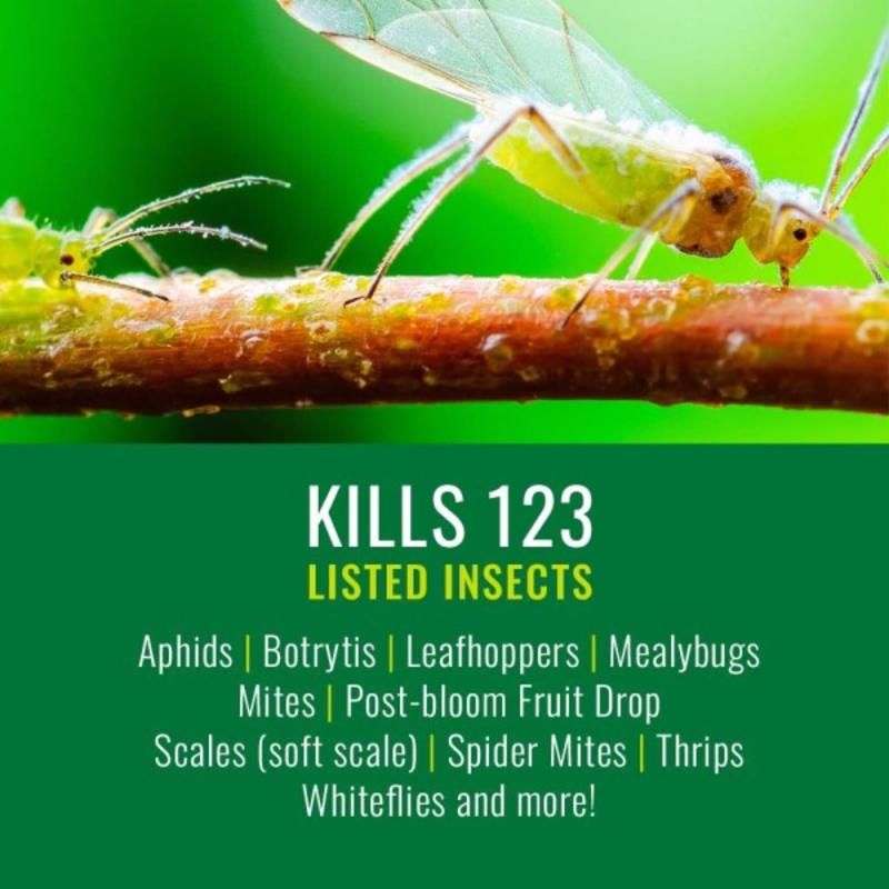 INSECT KILLER: Controls Aphids, Whiteflies, Spider Mites, Fruit Flies and other listed pests