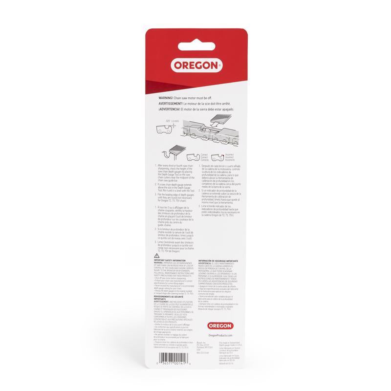 Depth gauge setting being a major factor affecting any saw chain's level of safety and performance, this depth gauge filing kit including .025" drop-center depth gauge tool and flat file helps the setting easily.