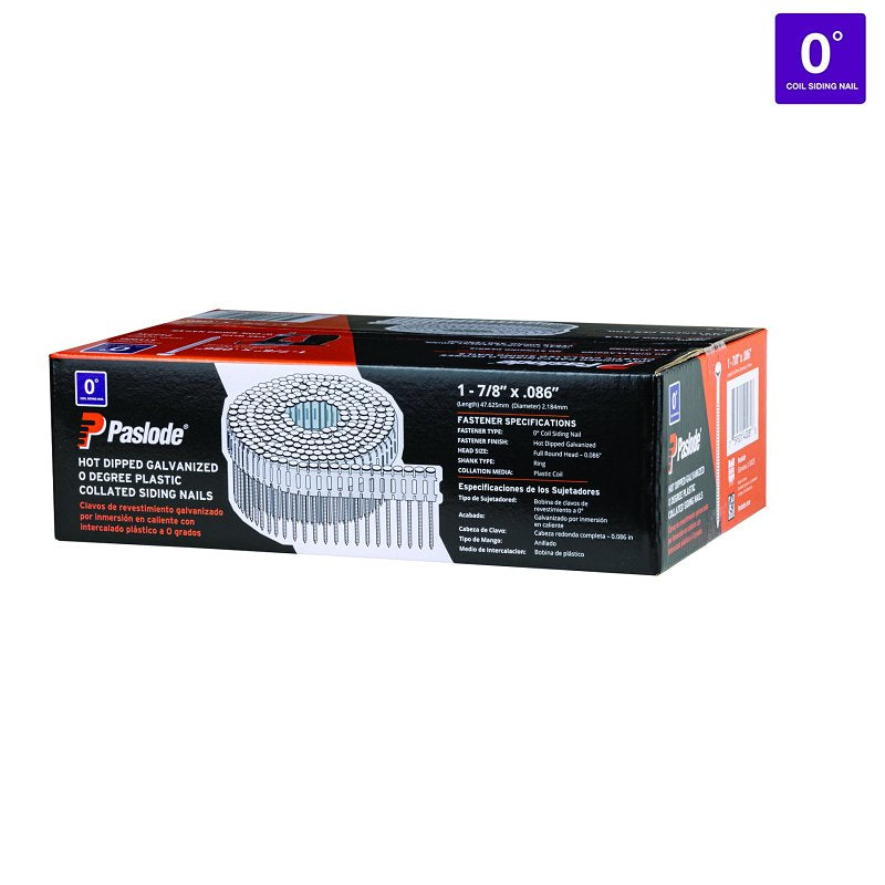 Paslode 650955 Coil Siding Nails, 1-7/8 in L, 14 ga, Steel, Hot-Dipped Galvanized, Round Head, Ring Shank