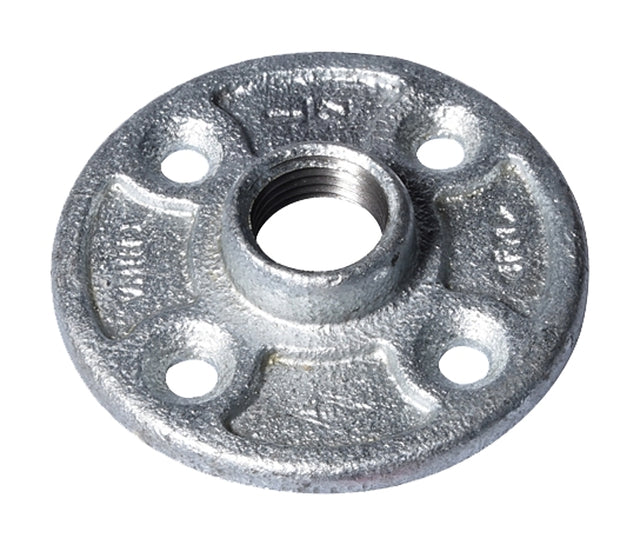 The galvanized floor flanges are made from malleable iron for tensile strength. Its galvanized finish resists rust in water, air, and steam applications.