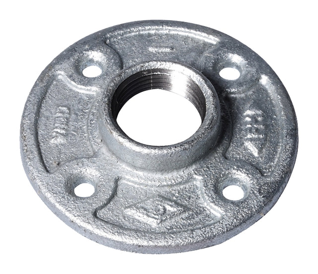 The galvanized floor flanges are made from malleable iron for tensile strength. Its galvanized finish resists rust in water, air, and steam applications.