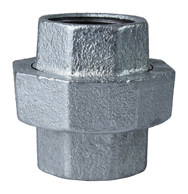 The galvanized union is for steam and water working pressure up to 150 lb. It has a brass to iron ball joint seat and the male end of seat is made with radius to insure ideal contact if piles are out of line. This is recommended for all ordinary plumbing and steam fitting jobs. It's scientifically designed to reduce weight without sacrificing strength.