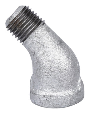 This galvanized 45 degree elbow is used to change direction in piping. It's suitable for use with water or steam. Flat banded, right hand threads.
