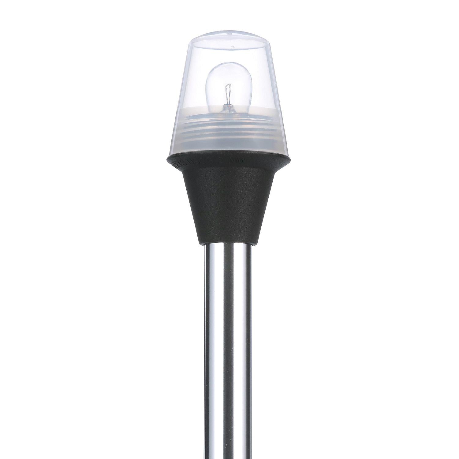 Replacement Stow-A-Way pole light provides 2-mile visibility for sail or powerboats under 39'. Anti-glare globe. 12V DC - 15 CP lamp included. Pole is 3/4" anodized aluminum and fits Attwood 7100 and 5100 series as well as Seachoice 05571 & 08251.