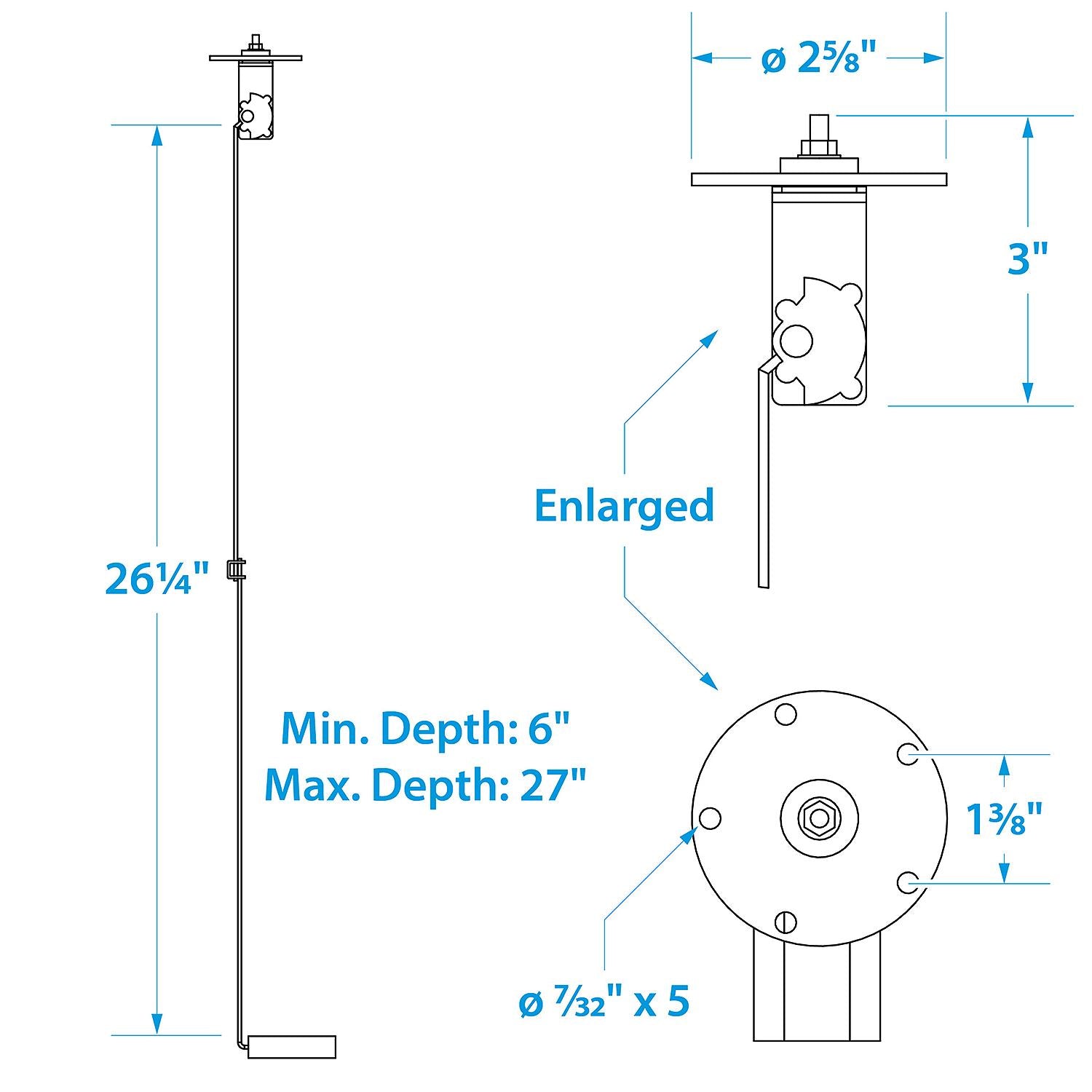 15421: Fuel Gauge Sender: Adjustable depth from 6" to 27". Fits most tanks.