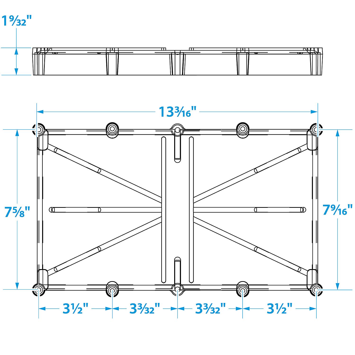 - Size: 13-3/16" L x 7-5/8" W x 1-9/32" H