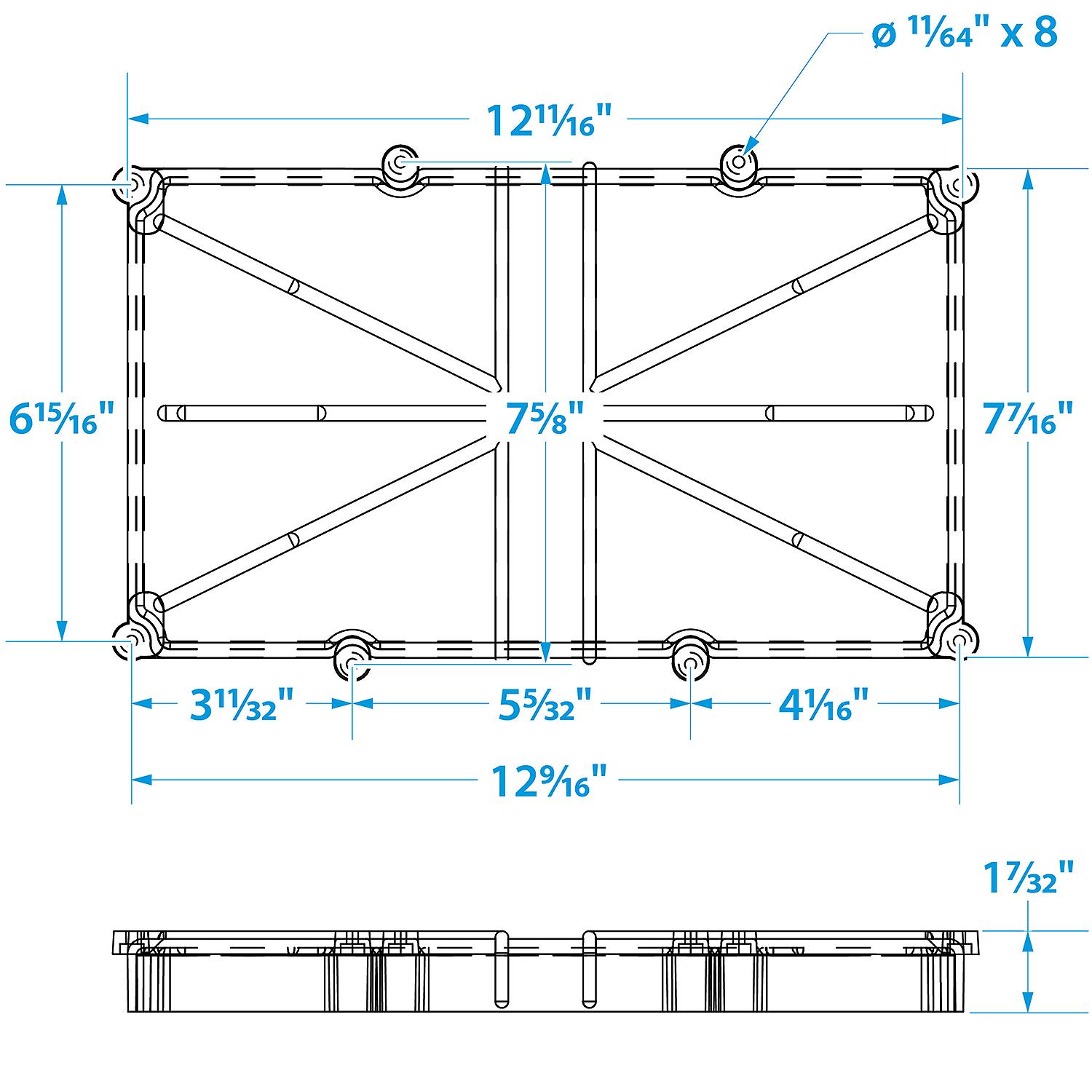- Size: 12-11/16" L x 7-7/16" W x 1-7/32" H
