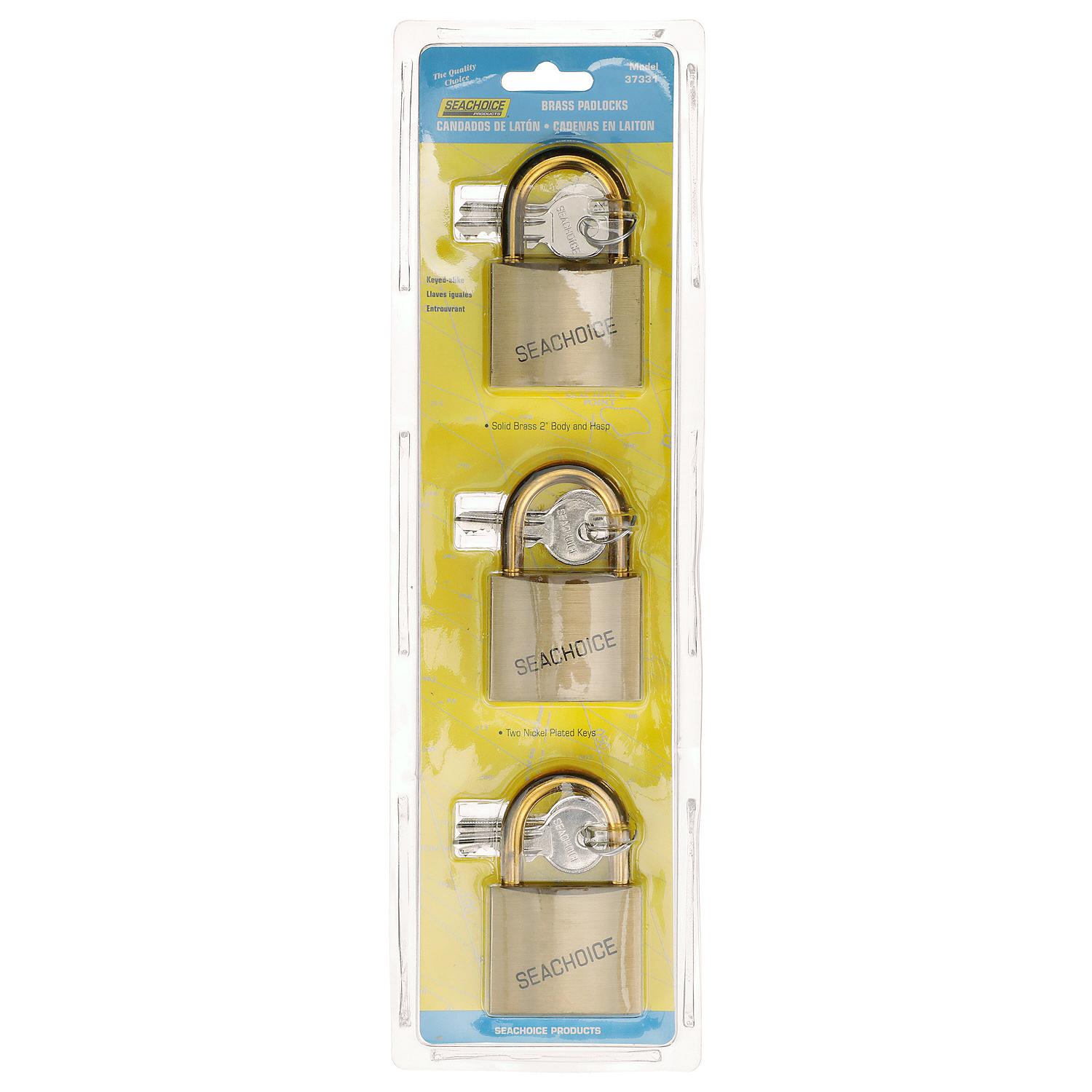 Seachoice 37331 2" Keyed-Alike Solid Brass Padlocks (3 Per Card)