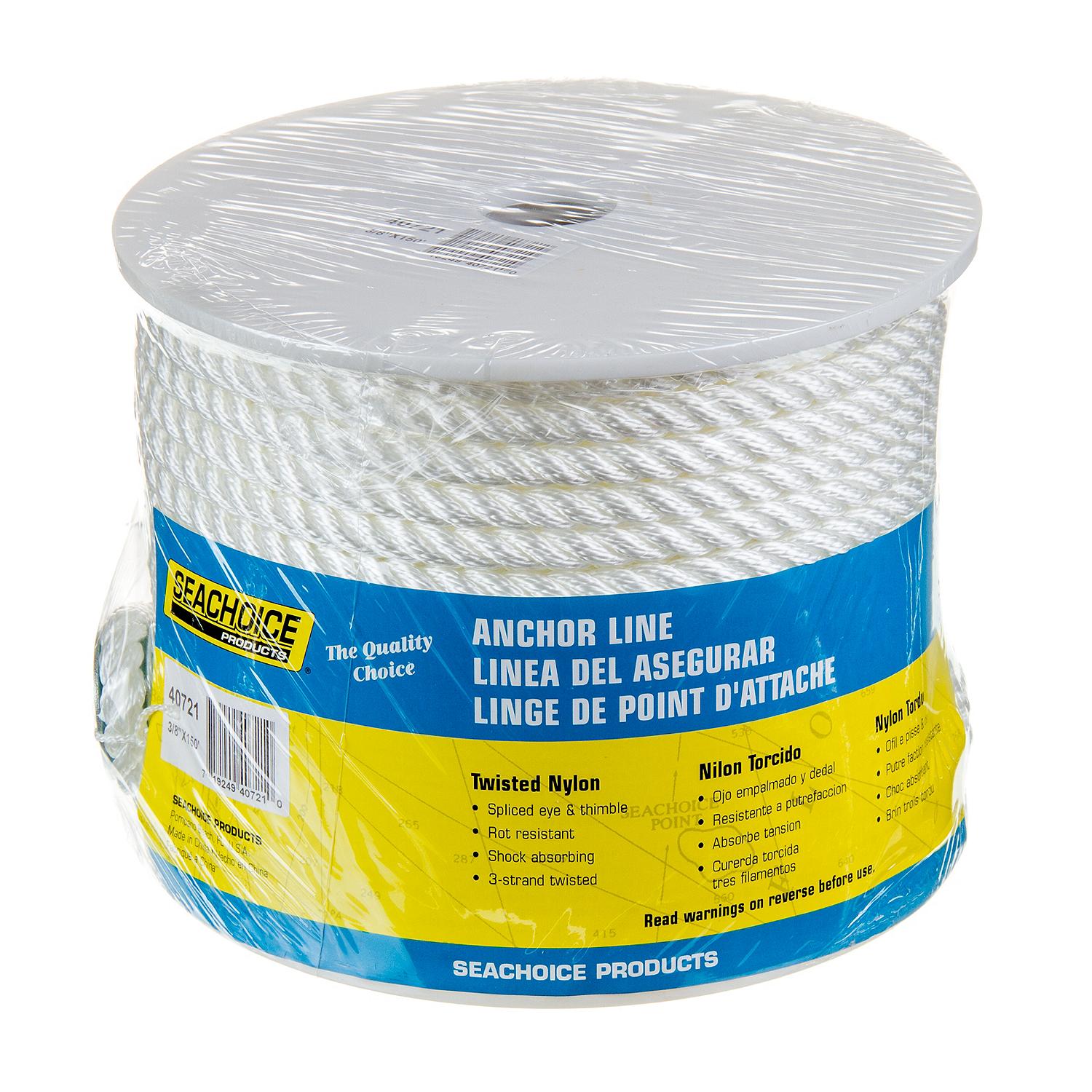 Seachoice 40721 3-Strand Twisted Nylon Anchor Line - White, 3/8" x 150