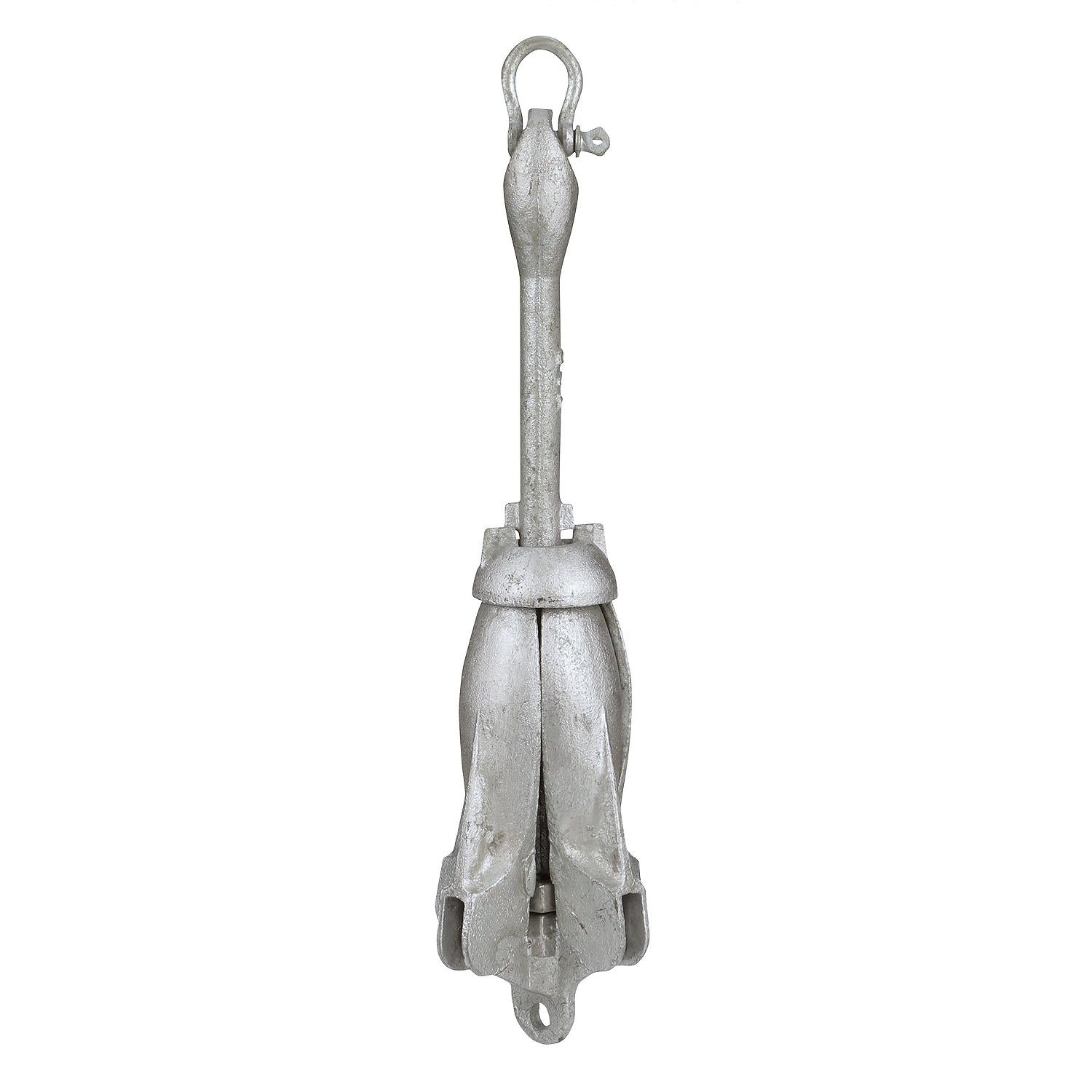 Made of malleable iron, heavily galvanized. Operates and folds up easily to store. Lockable in open and closed position. Great for small craft and dinghies. Includes shackle.