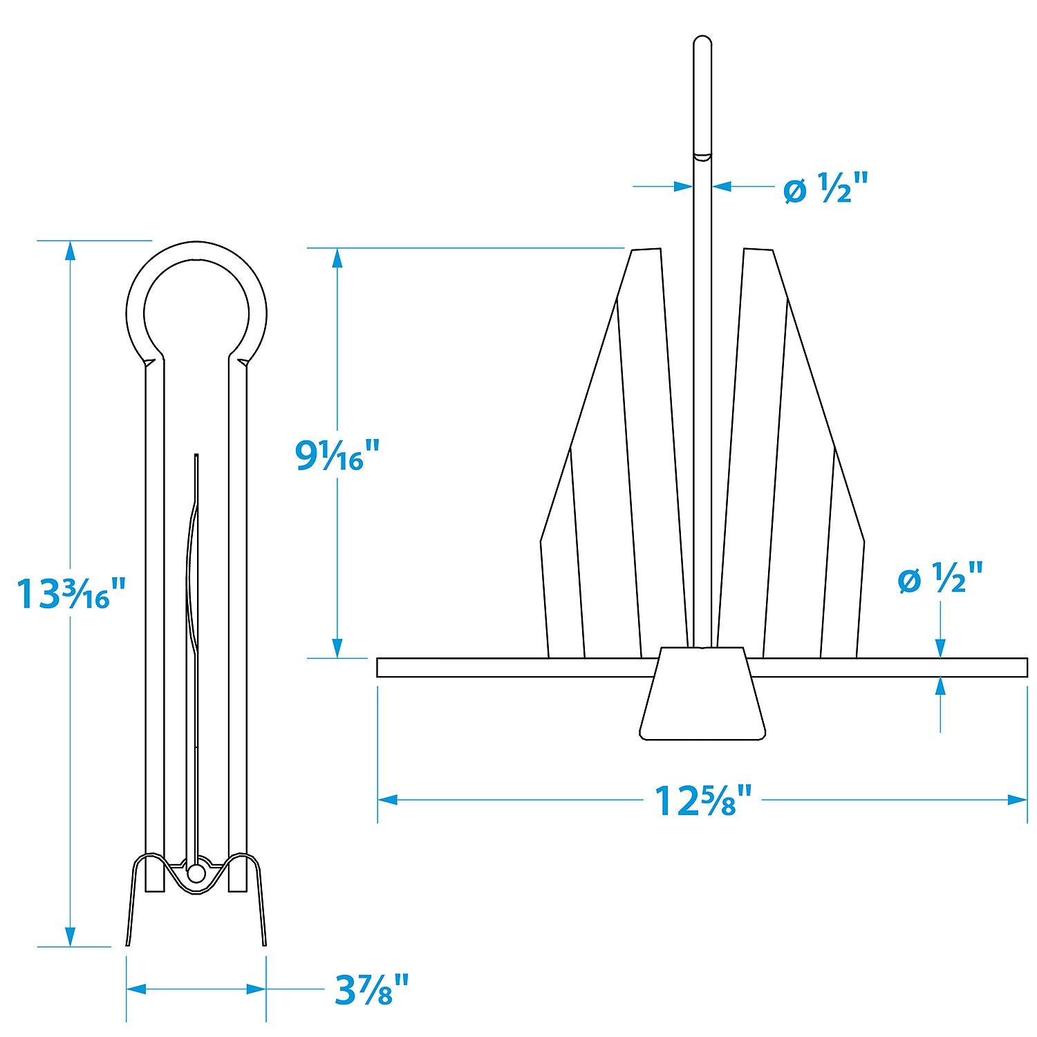 Quality at an economical price. Great holding power at a price everyone will enjoy. Hot dipped galvanized for maximum corrosion protection. Each anchor is individually inspected for quality and workmanship. The effective slip-ring design assures easy retrieval. Single piece crown construction for extra anchor strength. Firm penetration is attained by special fluke strengthening design. "Boat Size", "Line" and "Chain" are recommendations and are not included.