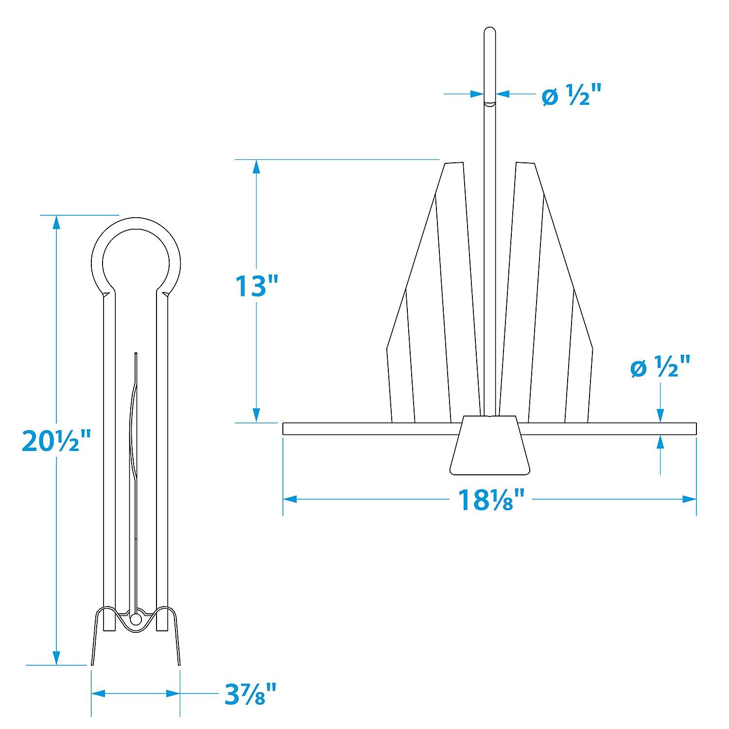 Quality at an economical price. Great holding power at a price everyone will enjoy. Hot dipped galvanized for maximum corrosion protection. Each anchor is individually inspected for quality and workmanship. The effective slip-ring design assures easy retrieval. Single piece crown construction for extra anchor strength. Firm penetration is attained by special fluke strengthening design. "Boat Size", "Line" and "Chain" are recommendations and are not included.