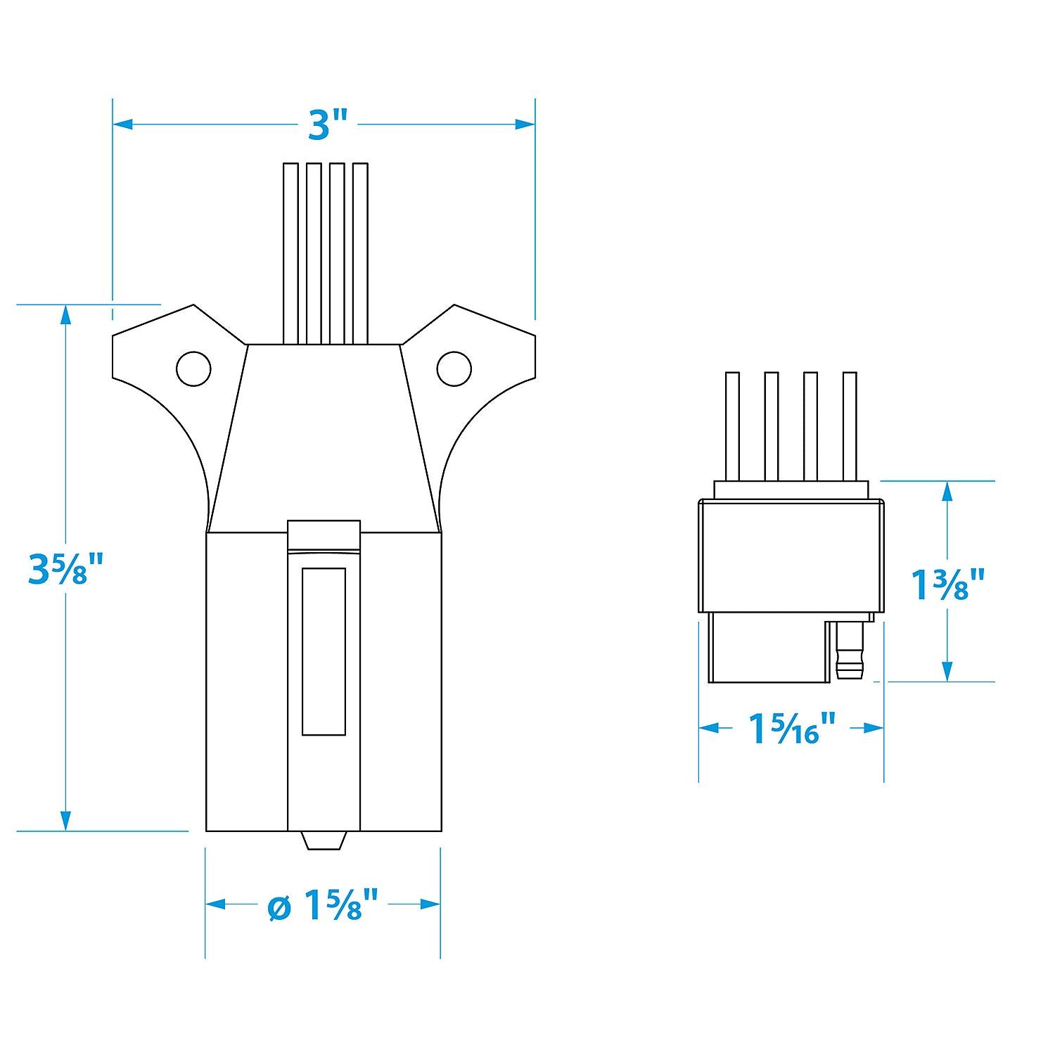 Adapter mates 7-way vehicle to 4 or 5-way trailer.