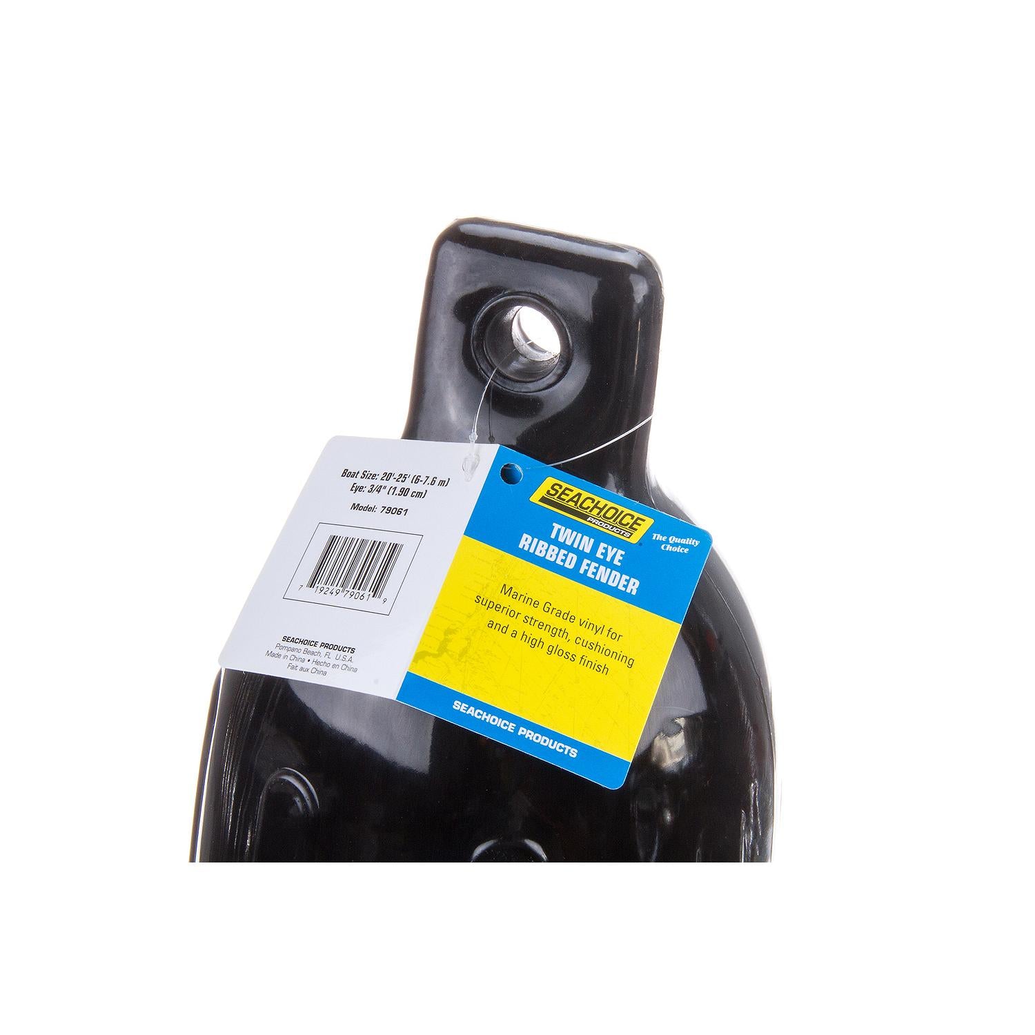 Seachoice 79061 Twin Eye Ribbed Fender, Black, 6.5 x 23"